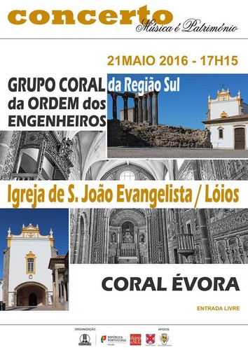 No próximo sábado dia 21 de Maio, terá lugar em Évora, mais um evento musical, intitulado " Música é Património", no qual participarão o Coral Évora e o Grupo Coral da Região Sul da Ordem dos Engenheiros. O mesmo decorrerá na Igreja de São João Evangelista, pelas 17h15.